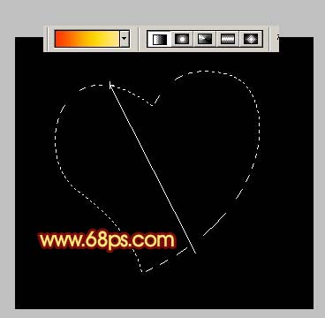6、選擇漸變工具,顏色設(shè)置如圖10,由心形底部向右上拉漸變?nèi)鐖D11,效果如圖12。