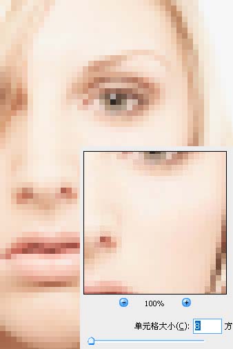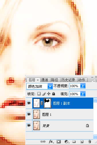 步驟 7、為圖層 1副本添加蒙版,用黑色筆刷涂抹眼睛部分,去除眼部晶格效果。