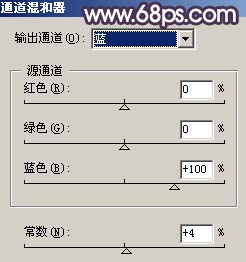 5、創建通道混合器調整圖層對藍色通道進行調整,參數設置如圖11,效果如圖12。