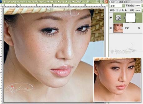 3、新建一個圖層,蓋印圖層,做noiseware濾鏡操作,確定后加上圖層蒙版用灰色畫筆擦去操作過度的地方。