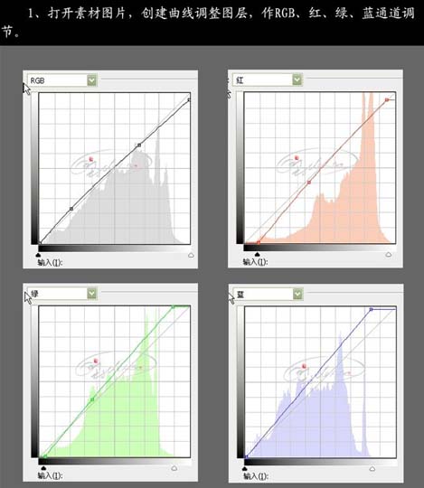 1、打開素材圖片,創建曲線調整圖層,做rgb、紅、綠、藍通道調節,參數及效果如下圖。本信息代表文章來源網頁教學webjx.com請大家去www.webjx.com瀏覽!