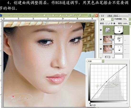 4、創建曲線調整圖層,參數設置如下圖,確定后用黑色畫筆擦去不需要調節的部分。