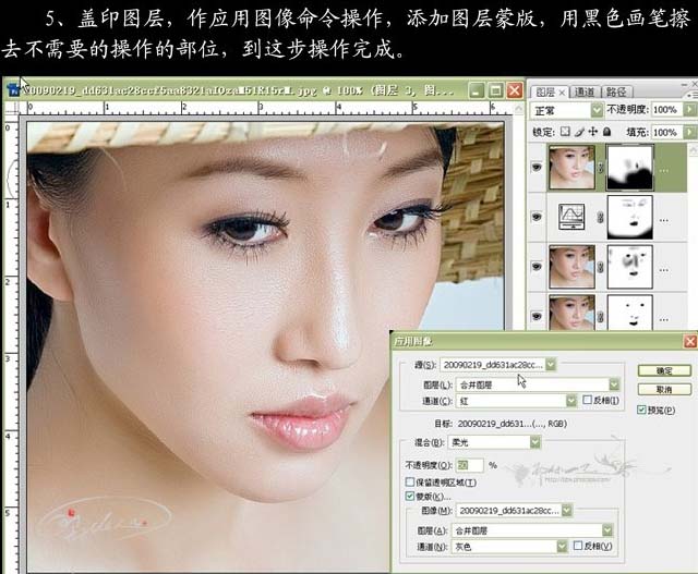 5、新建一個圖層,蓋印圖層,執行:圖像 > 應用圖像操作,添加圖層蒙版,用黑色畫筆擦去不需要的操作部分,到這一步完成最終效果。