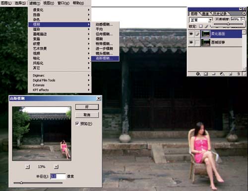 2、把背景圖層復制一層,取消選區,執行:濾鏡 > 模糊 > 高斯模糊,數值為3,確定后把圖層的不透明度改為:45%。