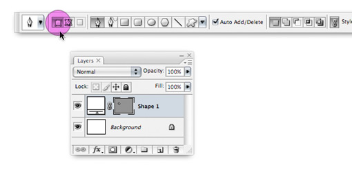 2.形狀圖層:選擇該項后,所繪路徑會形成一個圖形,不僅在路徑面板可見,而且在圖層面板形成一個矢量遮罩層。