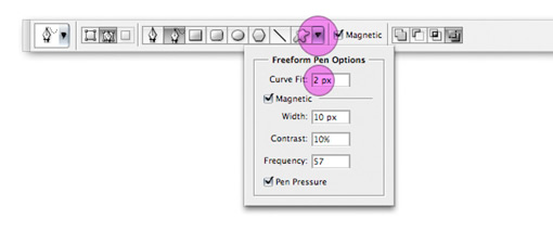 10.鋼筆壓力:當自由鋼筆工具被選擇時在自由鋼筆選項下拉列表中可用。選擇該項后,根據繪畫板的承受的壓力(如果你有的話)決定鋼筆的寬度。