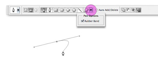 7.橡皮帶:當鋼筆工具被選擇時在鋼筆選項下拉列表中可用。在鼠標點擊前,可預覽即將創建的路徑。本文是網頁教學www.webjx.com收集整理或者原創內容,轉載請注明出處!