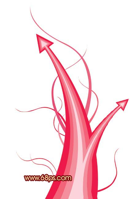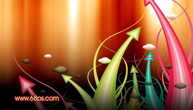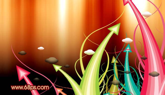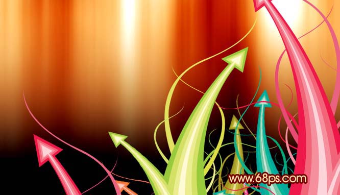 11、把做好的箭頭圖層拖到背景文件上,再多復制幾層,按ctrl + u調成其它顏色,再適當的變換大小和方向,效果如圖22。