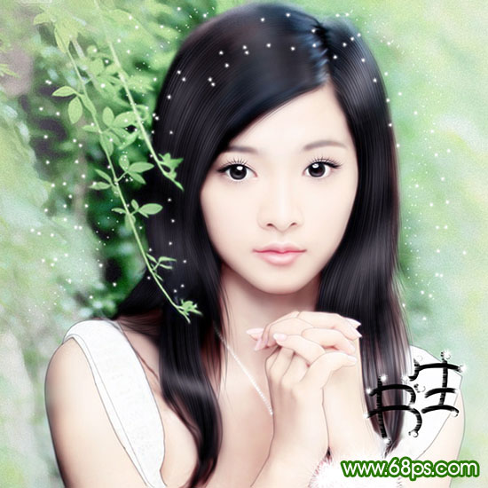 10、最后新建一個圖層,用畫筆點上一些裝飾白點,讓照片更夢幻,完成最終效果。
