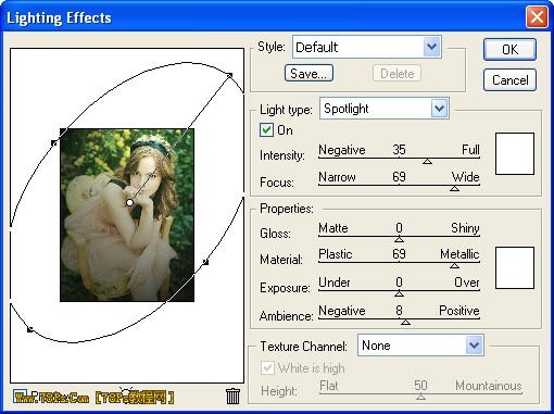 5.最后我們需要做的是增加照明光暈增強她美麗的臉。按下ctrl+j復制圖層1得到圖層1副本;對圖層1副本執行濾鏡--渲染--光照效果,并使用這些設置