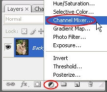 1.原始照片是有點黑暗,她的皮膚沒有足夠明亮。在這種情況下,我們可以利用通道混合器的工具,單獨增強某種顏色。你可以找到這個工具在圖層面板底部。