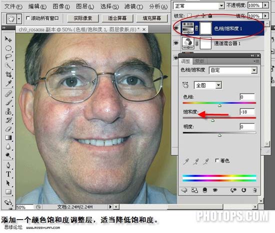 4、創建色相/飽和度調整圖層,適當降低飽和度,參數設置如下圖。