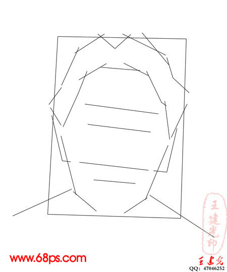 7、頭發的繪制,我們首先在頭發去填充了黑色,然后用鋼筆工具勾出白發的位置及走勢,發尾部分可以用涂抹工具進行修飾,要講究自然哦,不能太生硬了,處理后如下圖: