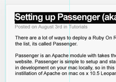 在一個網頁設計中設計合理的用戶顯示器范圍是網頁布局一個重要的步驟。除非另有要求,我一般都是將分辨率調整到1024×768,因此我在文檔的中部將參考線設置為960px寬,兩邊空白處各有20px寬,這是為了以防一些元素超出之前設置的屏幕分辨率。