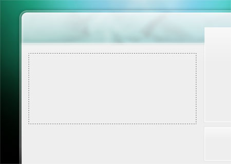 繼續用矩形選框工具在內容區域上面畫一個側邊欄。依舊填充灰色背景(#eeeeee)
