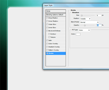雙擊圓角矩形圖層然后添加8白色描邊,寬度為8px,混合模式為疊加然后調整透明度為30%,這樣就會有一個很酷的透明效果-_-"