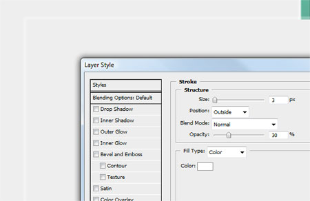 繼續用外發光來添加一個淺灰色的邊,調整擴展值到最大這樣我們可以得到一個雙邊線效果。