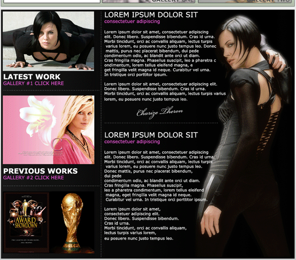 使用顏色#242323 到#000000 的漸變色創(chuàng)建網(wǎng)站的主要區(qū)域,同時(shí)導(dǎo)入一張女性模特素材