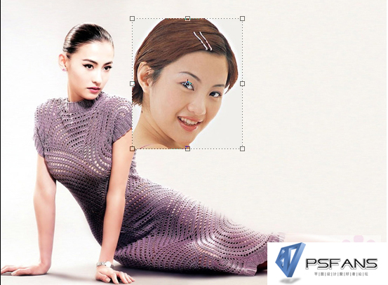 把兩張素材圖片打開,將要換的臉部選出來然后拖到另一張圖片上