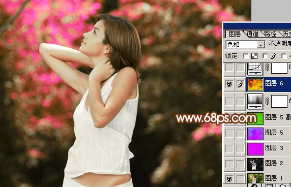 5、把圖層混合模式改為“色相”,然后把本層下面除背景圖層以外幾個圖層都隱藏,效果如圖7。