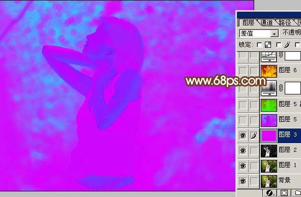2、新建一個圖層填充顏色:#dd07fd,然后把圖層混合模式改為“差值”,效果如圖3。