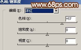 4、按ctrl + u調整色相/飽和度,參數設置如圖5,效果如圖6。