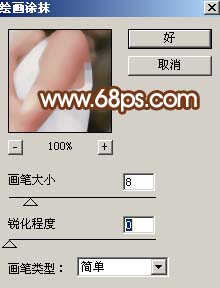 8、新建一個圖層,蓋印圖層,執行:濾鏡 > 藝術效果 > 繪畫涂抹,參數設置如圖12,確定后加上圖層蒙版用黑色畫筆把人物部分擦出來,效果如圖13。