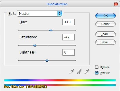 按ctrl+u調整色相飽和度,色相:+13,飽和度:-42