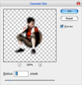8.按ctrl+j復制一層男孩的圖層,對該圖層執行濾鏡--模糊--高斯模糊,2px