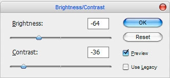 6.降低男孩圖片的亮度對比度,使他與背景更加和諧。執行圖像--調整--亮度對比度,參數如下