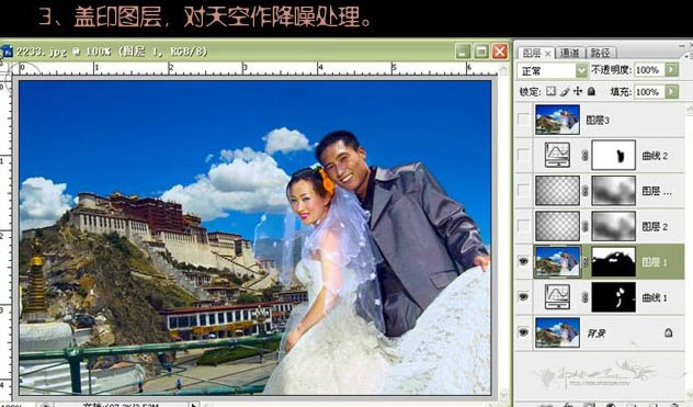 3、新建一個(gè)圖層,按ctrl + alt + shift + e蓋印圖層,對天空降噪處理。