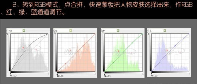 2、選擇菜單:圖像 > 模式 > rgb顏色,在彈出的窗口選擇合拼,按字母“q”,進(jìn)入快速蒙版狀態(tài),用畫筆把人物皮膚部分涂出來,然后按字母“q”,推出快速蒙版,然后創(chuàng)建曲線調(diào)整圖層,參數(shù)及效果如下圖。
