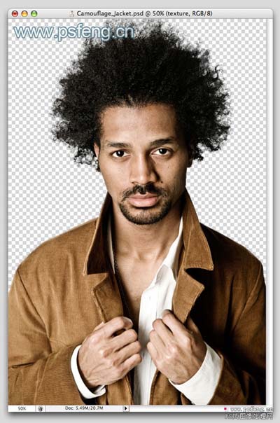 3、現在讓我們開始建立我們的偽裝拼貼夾克。我們把它分為六個部分。這將根據自己的想法,你也可以分成更多的零件來處理。 我選擇使用矢量蒙板。矢量蒙板可以得到我們想要的局部圖像。