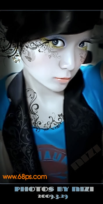 | 13、新建一個圖層,圖層模式為顏色,用畫筆涂上自己喜歡的眼影及腮紅。圖層不透明度根據需要調整。 |