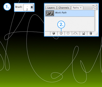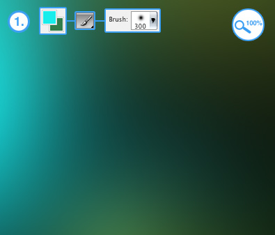 firstly, we are going to enhance the background layer with some more simulated light. do this by selecting a nice complementary colour in it’s brightest shade (1.) and a big 300px brush. the rest is up to you, but i recommend working on a fresh layer as this gives you the flexibility to build up a few colours. it also helps if you don’t like how its going, a bigger brush sometimes helps.