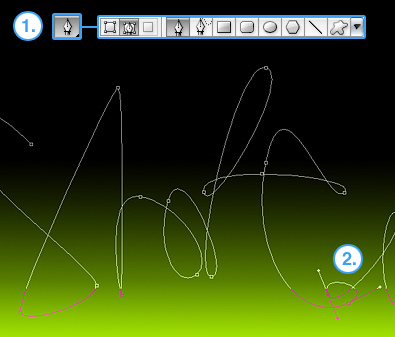 創建新圖層,打開路徑面板,描繪出文字的大體情況: