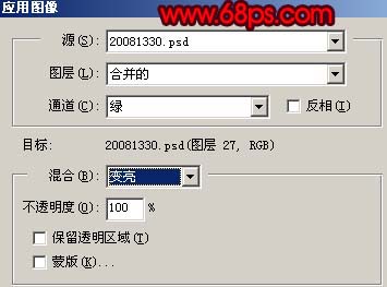 4、新建一個圖層,蓋印圖層,執(zhí)行:圖像 > 應(yīng)用圖像,參數(shù)設(shè)置如圖4,效果如圖5。