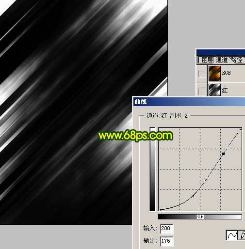 | 7、新建一個圖層,蓋印圖層,點通道面板,把紅色通道復制一層,按ctrl + m調(diào)整下副本對比度,參數(shù)設置如下圖。 |