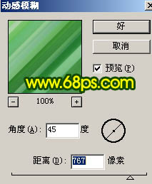 | 4、執(zhí)行:濾鏡 > 模糊 > 動感模糊,參數(shù)設置如圖5,效果如圖6。 |