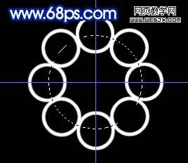 | 5、以參照線交點為中心用橢圓選框工具拉一個正圓如圖7,然后按delete刪除,效果如圖8。 |