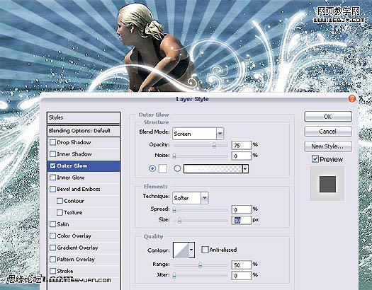 | 9、給花飾添加外發光。具體參數如下圖所示: |