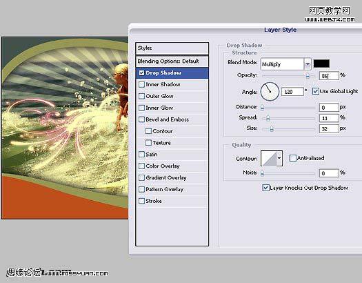 | 14、設置模糊圖層樣式為疊加,這將使圖片光亮而且有自然發光的對比度。下圖是目前制作所達到的效果。 |