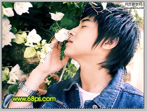 | 4、把背景圖層復制一層,按ctrl + shift + ]移到圖層的最上面,選擇鋼筆工具把人物部分摳出來,如圖5,然后按ctrl + shift + i反選,按delete刪除,效果如圖6。 |