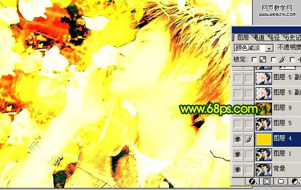 | 3、把背景圖層復制一層,按ctrl + shift + ]移到圖層的最上面,然后把圖層混合模式改為“差值”,效果如圖4.。到這一步照片的背景就處理完成,雖然有點怪不過還是蠻有個性的。 |