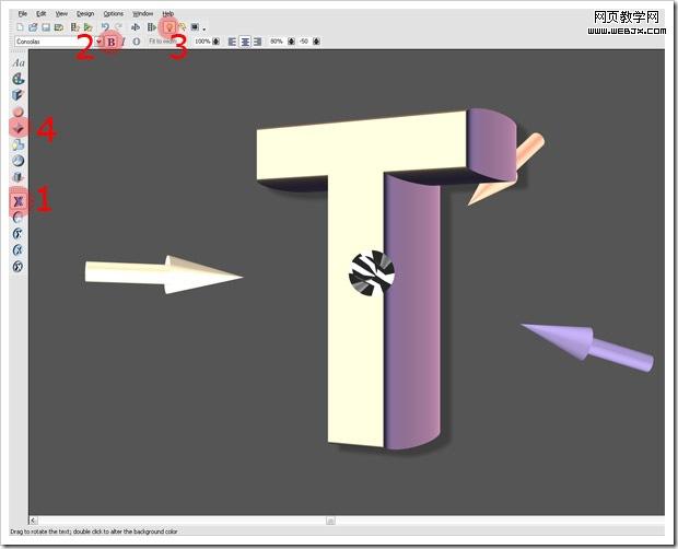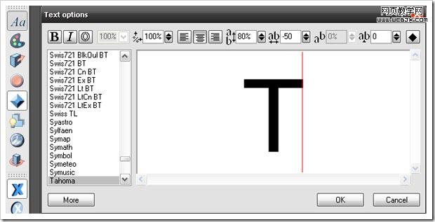 xara 3d教程第一部分:好了,讓我們打開xara 3d教程。值得注意的是這里用的是”xara 3d版本6′。點(diǎn)擊文字選項(xiàng),按下ctrl+a來刪除現(xiàn)有的文字,然后寫下字母t,根據(jù)你的喜好選擇你要的字體,最后按確定。