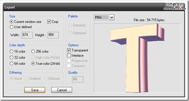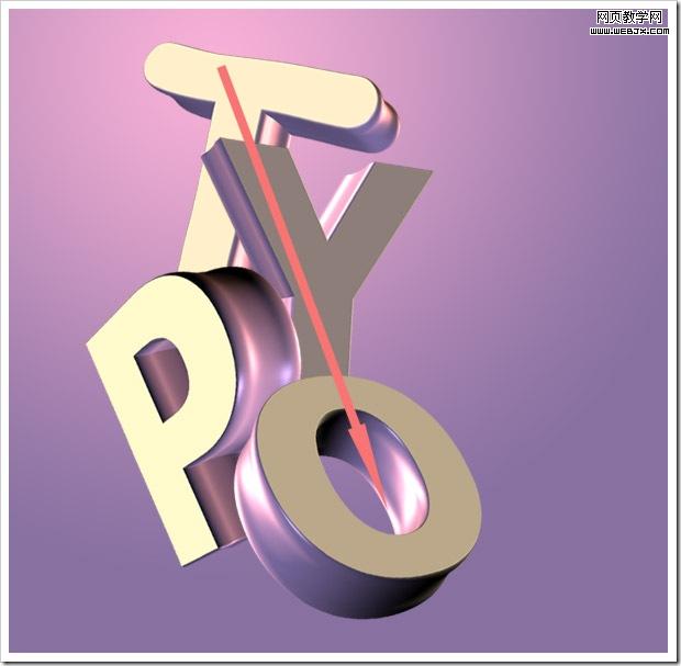 像這樣做完每一個(gè)字母,改變3d的效果,直到你滿意為止。我最后得到了4個(gè)png文件,它們分別是–t,y,p,e.