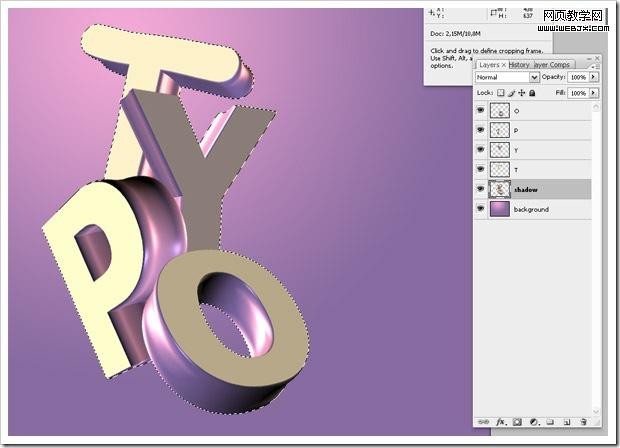 2現(xiàn)在按ctrl+e合并圖層,取名為shadow,然后把它移動(dòng)到所以字母圖層的下方。