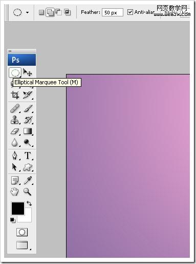 1點(diǎn)擊橢圓選框工具,設(shè)置羽化為50像素