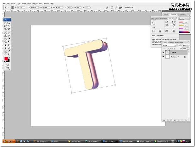 3按住ctrl+t 來調(diào)整字母的大小,同時(shí)按住alt+shift 可以有中心按比例的調(diào)整它,旋轉(zhuǎn)它來的到一個(gè)不錯(cuò)的效果。