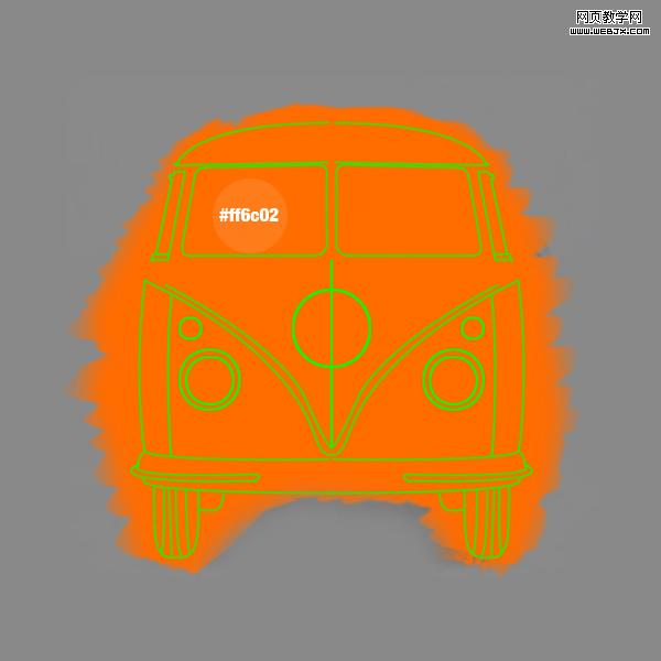 是時候為車添加點顏色了。使用這種顏色#ff6d00,然后在新建圖層中開始上色。把這個新建圖層放到步驟2中提到的圖層下面。